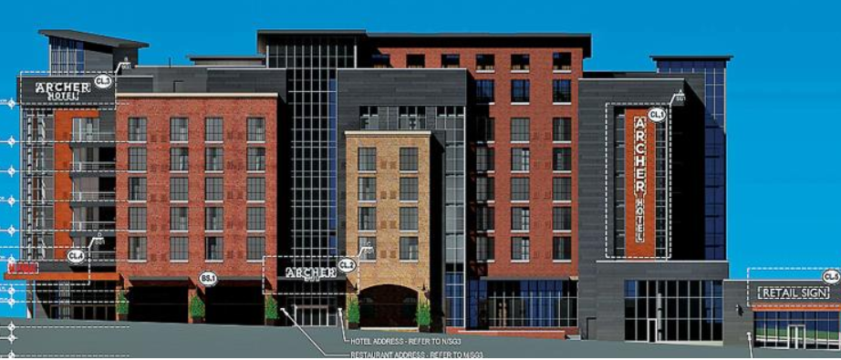 Fairfax County Planning Commission approved a comprehensive sign plan for the new Archer Hotel in western McLean on the edge of Tysons Virginia. The developer Lynne Strobel or Tysons LW Hotel Associates LP is building the hotel on 0.75 acres south of Dolley Madison Boulevard at 7599 Colshire Drive. Construction on the hotel is planned to finish next summer. The 178-room hotel will be seven stories and have a 7,082-square-foot full-service restaurant called Almanac, as well as an attached, independent retail space. The hotel and other businesses will be built atop a two-level parking structure.