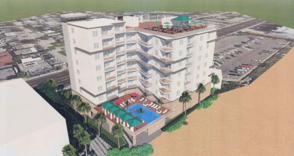 A proposed nine-story, 56-room hotel and resort is planned to replace the current 42-room Schooner Hotel in Tampa Florida. The redeveloped Schooner Resort is closer to construction after a board of commissioners meeting that led to a vote permitting zoning changes to accommodate the plans. Proposed as a nine-story, 56-room hotel with a second-floor restaurant and rooftop bar, the new resort is set to be the tallest hotel in Madeira Beach’s two-mile strip of beachfront. It will stand on a stretch of four- and five-story condos on the west side of Gulf Boulevard that looks out over the beach, where the current 42-room Schooner Hotel stands. Across the street, the developers are planning additional parking and 6,000 square feet of retail space as part of the plan. Developer Kevin Bowden, Jeff Beggins and Jim Beggins of Madeira Beach and Bowden plan to break ground next year. The also own the nearby Cambria Suites Hotel.