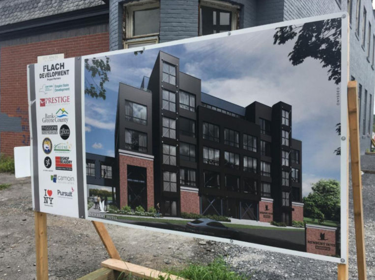 Construction has begun on the Newbury Hotel on South River Street in Coxsackie, New York. Aaron Flach is developing the project. The first steel pieces began going up late last week and construction is to be complete by June 2022. Exterior work will finish by the start of winter when the interior work will begin. The hotel is part of a multi-phase development that will include an event center and wedding venue, spa, restaurant and other facilities. Once complete the hotel will be four stories with a roof top bar and seating area. Project partners include: Flack Development Project Partners, Empire State Development, Prestige, Bank or Green Country, Mazzone Hospitality, 3t Architects, Bishop Beaudry Construction and Camoin Associates.