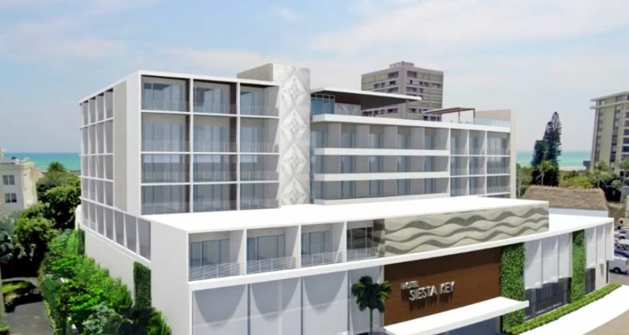 A 170 guestroom eight story hotel on Calle Maramar in Siesta Key Village Florida has been recommended for approval by the city planning commission. The site is located at the intersection of Calle Miramar and Beach Road. Bill Merrill is the land use attorney representing the developer. RE/MAX real estate agent Robert Anderson is planning the project that is being designed by DSDG Architects.