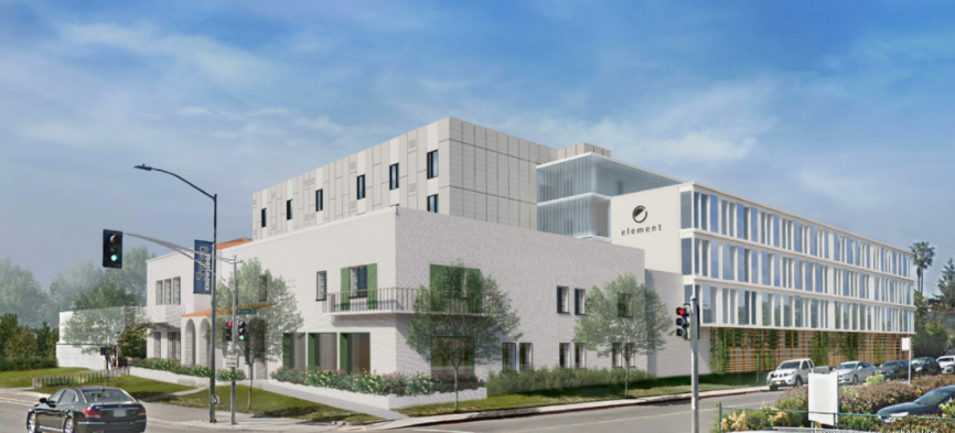 A 151 guestroom Element Hotel at UC Davis is planned at 2200 Stockton Blvd in Sacramento California. Part of the former Coca-Cola bottling plant that was built in 1936 would become part of the new hotel and be converted into 30 guestrooms and the hotel’s public areas, meeting rooms, bar, restaurant and fitness center. The new 5 story structure will connect to the west end of the original structure and contain the remaining guestrooms. Developer Dan Lee of Leeland Enterprises is proposing the project. The hotel is being design by Stanton Architecture.