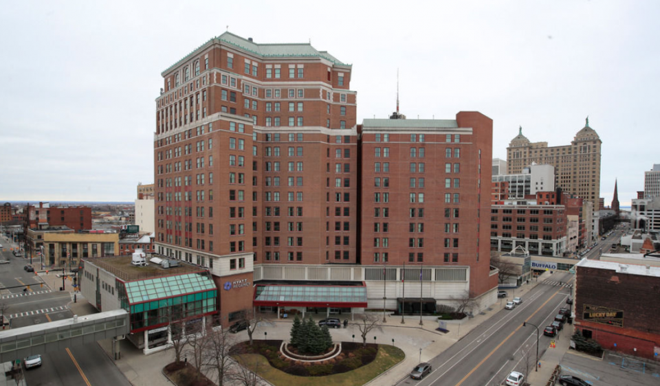 The Hyatt Regency Hotel in downtown Buffalo New York is planning a major renovation. The hotel was recently purchased at auction by Douglas Jemal who has hired Aimbridge Receiver Services to manage the property. Developed from the historic Genesee Building that sits on 1.8 acres and dates to 1922, the 16-story Hyatt opened in 1984, and was renovated in 2008 and 2009. It includes more than 27,000 square feet of function space with 10 meeting rooms, three dining options, a fitness center and spa, an indoor swimming pool, a full-service business center, and a gift shop and newsstand. Jemal plans to fully renovate the hotel over the next six months, including all the rooms. Workers are also fixing and recommissioning the mechanical systems after the long closure. The room count and hotel features will remain the same, including the ballrooms and meeting rooms, and Starbucks will be reopening next month.