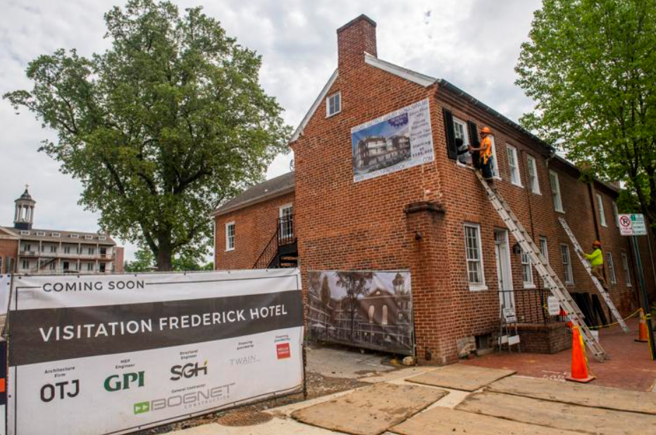 A Marriott branded boutique hotel on the site of the former Visitation Academy on East Second Street in Frederick Maryland is scheduled to open in July 2023, with 57 standard hotel rooms and 10 extended-stay rooms. The project will be affiliated with Marriott, and the property will be known as Visitation Hotel Frederick, a Tribute Portfolio Hotel. Visitation will complement a larger hotel and conference center planned for along Carroll Creek and also run by Marriott. The Visitation Academy opened in 1846 and closed in June 2016, citing low enrollment. It operated as an all-girls Catholic school for pre-kindergarten through middle school students. The site was used as a hospital during the Civil War, and nuns lived on the property until 2005. About 110 of them are buried in a cemetery in the rear courtyard, which will be preserved as part of the project. Along with the hotel, the property will also contain 11 condominiums. The project team includes: OTJ Architecture, GPI MEP Engineers, SGH Engineers, Twain, Bognet Construction and Harris, Smariga & Associates.